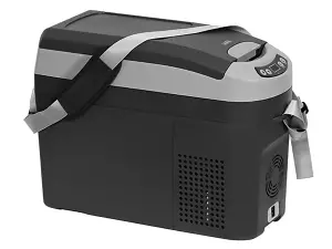 Keep your goods cool with this portable mini fridge freezer. Cool travel companion. Use the 18-quart, LED-illuminated compartment as a fridge or freezer. featuring electronic thermostat, energy-smart compressor and low-voltage cutout, plus carrying strap.